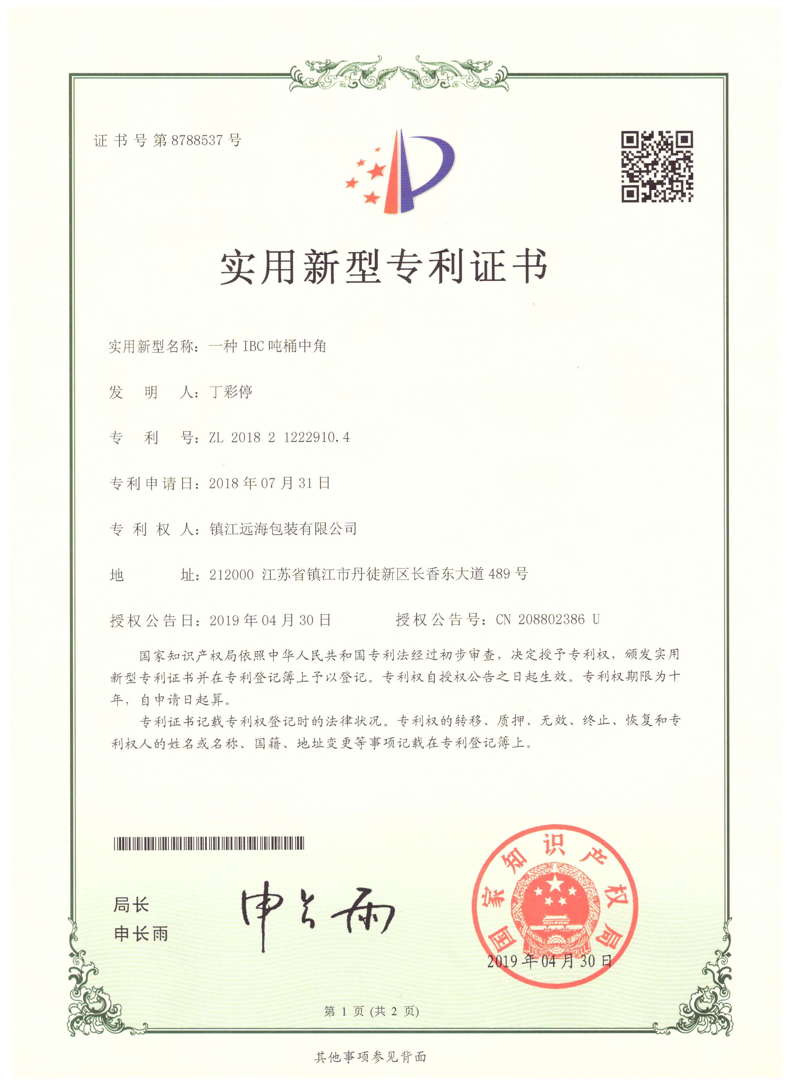 鎮(zhèn)江遠海包裝有限公司成立于2014年8月,是一家專注于生產(chǎn)IBC噸桶及零配件的企業(yè),主要產(chǎn)品有各種型號的底板、橫梁、底角、標牌、鍍鋅焊管等。公司擁有相關產(chǎn)品的外觀型和實用型8項專利。